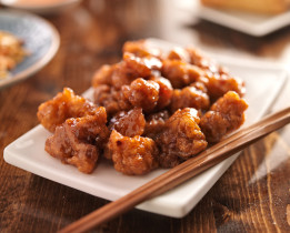 | Friteerattua kanaa hapanimeläkastikkeessa | 9,50 € |